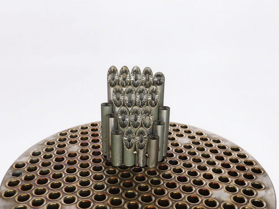 The fins inside the tubes enhance gas turbulence and the collision of moist particulate matter, significantly improving condensation recovery efficiency compared to straight tubes.